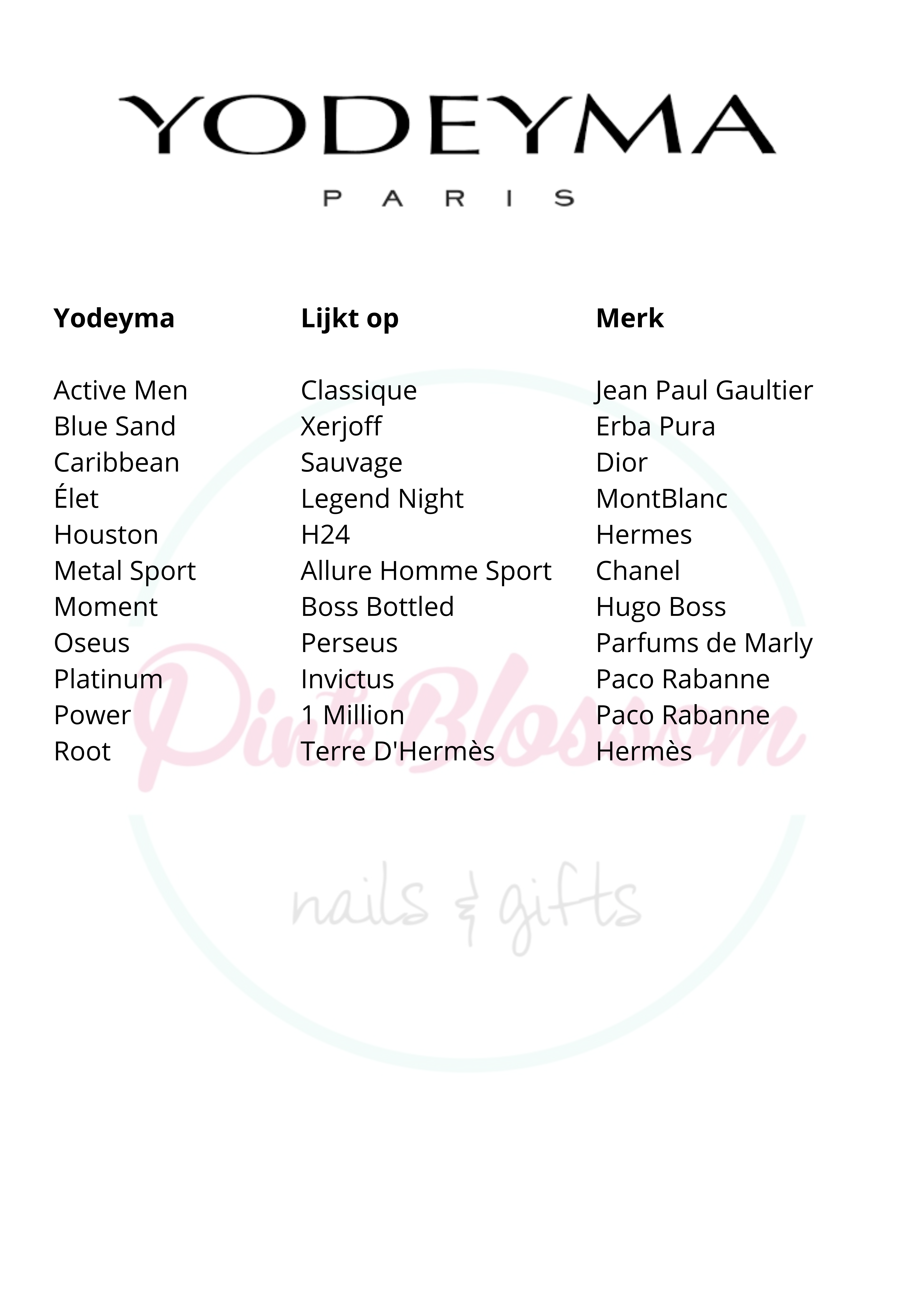 Geïnspireerd op de geuren van deze tijd. De parfum wordt gemaakt in Parijs, vandaar de naam Yodeyma Paris.